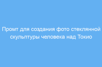 Промт для создания фото стеклянной скульптуры человека над Токио