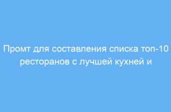 Промт для составления списка топ-10 ресторанов с лучшей кухней и обслуживанием в округах Огайо