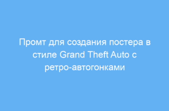 Промт для создания постера в стиле Grand Theft Auto с ретро-автогонками