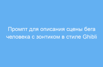Промпт для описания сцены бега человека с зонтиком в стиле Ghibli