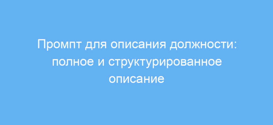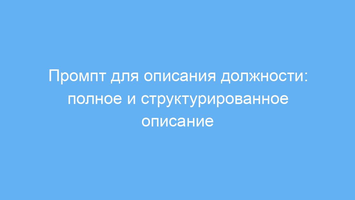 Данный промпт помогает быстро структурировать и получить полный текст описания должности. Это ускоряет работу специалистов, снижает вероятность упущений важных деталей и поддерживает единый стандарт оформления документов в компании.