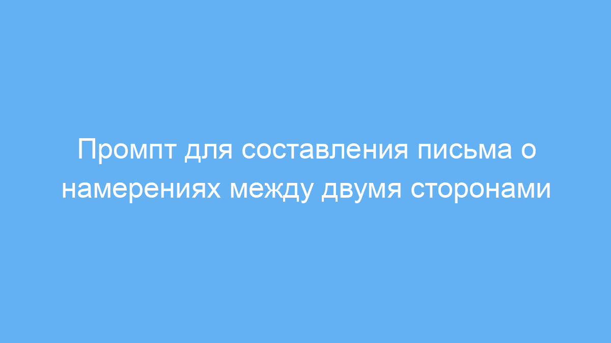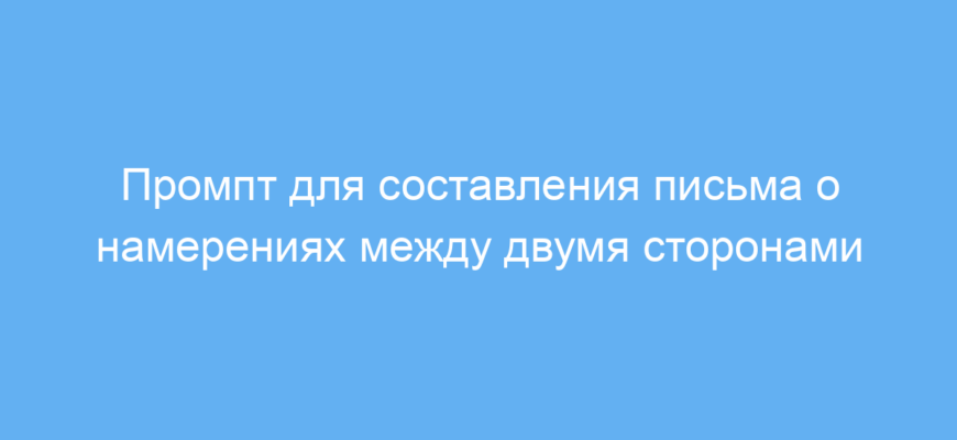 Этот промпт предназначен для юридических консультантов, юристов, специалистов по сопровождению сделок и студентов юридических факультетов. Он помогает быстро и корректно составить письмо о намерениях — официальный документ, фиксирующий ключевые договорённости и намерения между двумя сторонами перед заключением основного договора.