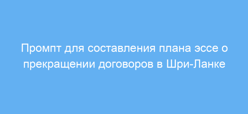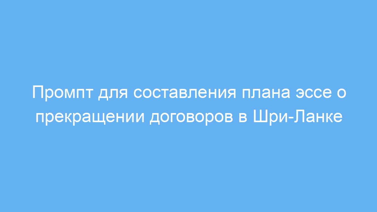 Этот промпт создан для студентов, юристов и исследователей, которым необходимо быстро и структурировано подготовить план эссе по теме прекращения договоров в праве Шри-Ланки. В частности, он помогает организовать мысли и выделить ключевые разделы по способам прекращения договоров, правовым последствиям и мерам защиты интересов сторон. Если вам нужно написать объемное и аргументированное эссе на юридическую тему, промпт значительно экономит время и упрощает процесс подготовки.