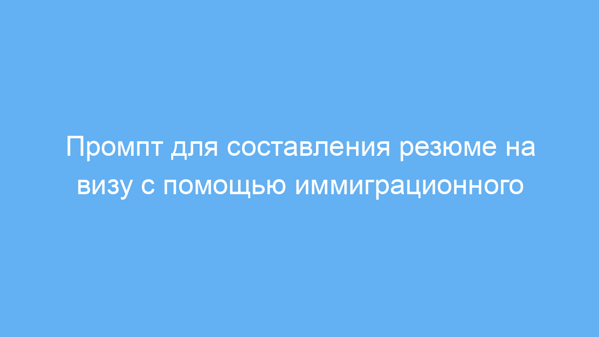 Этот промпт предназначен для людей, которые планируют подавать заявление на иммиграцию и хотят подготовить профессиональное резюме для {{Страна}}. Он будет особенно полезен тем, кто не уверен в требованиях к резюме в выбранной стране и хочет получить рекомендации эксперта.