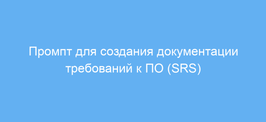 Этот промпт значительно упрощает и ускоряет процесс создания качественной документации требований к программному обеспечению, снижая нагрузку на специалистов и минимизируя ошибки. Он помогает структурировать информацию и сделать её более понятной для всех участников проекта.