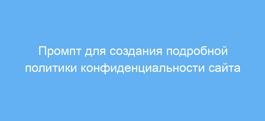Использование данного промпта значительно упрощает и ускоряет процесс создания юридически корректной политики конфиденциальности для сайта. Это помогает избежать ошибок, обеспечивает соответствие требованиям законодательства и облегчает взаимодействие с пользователями по вопросам защиты их данных.