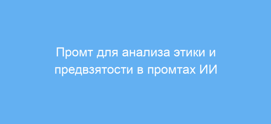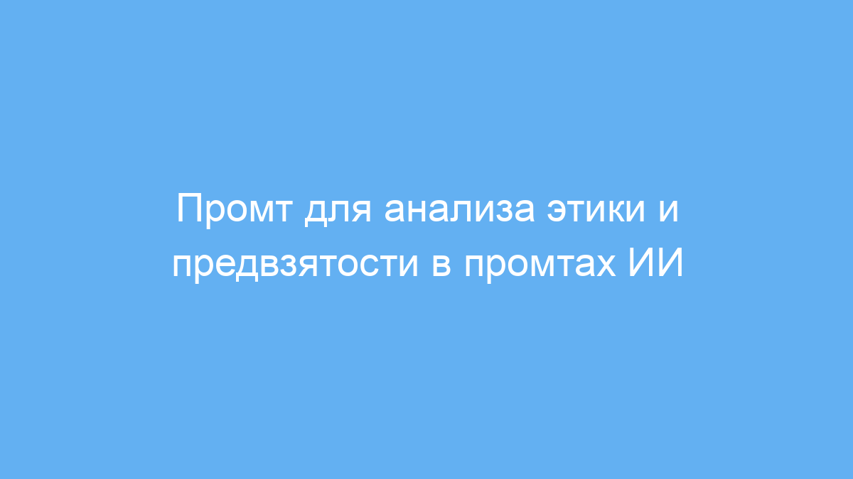 Этот промт создан для специалистов по этике искусственного интеллекта, разработчиков, исследователей и всех, кто работает с большими языковыми моделями (LLM). Его цель — помочь выявлять и устранять предвзятость, искажения и риски, которые могут присутствовать в промтах, используемых для нейросетей.