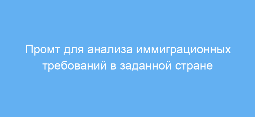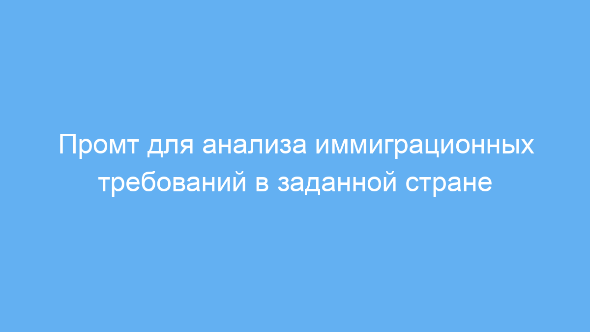 - Используйте этот промт, когда нужно получить комплексный обзор иммиграционного законодательства с учётом индивидуальных особенностей.