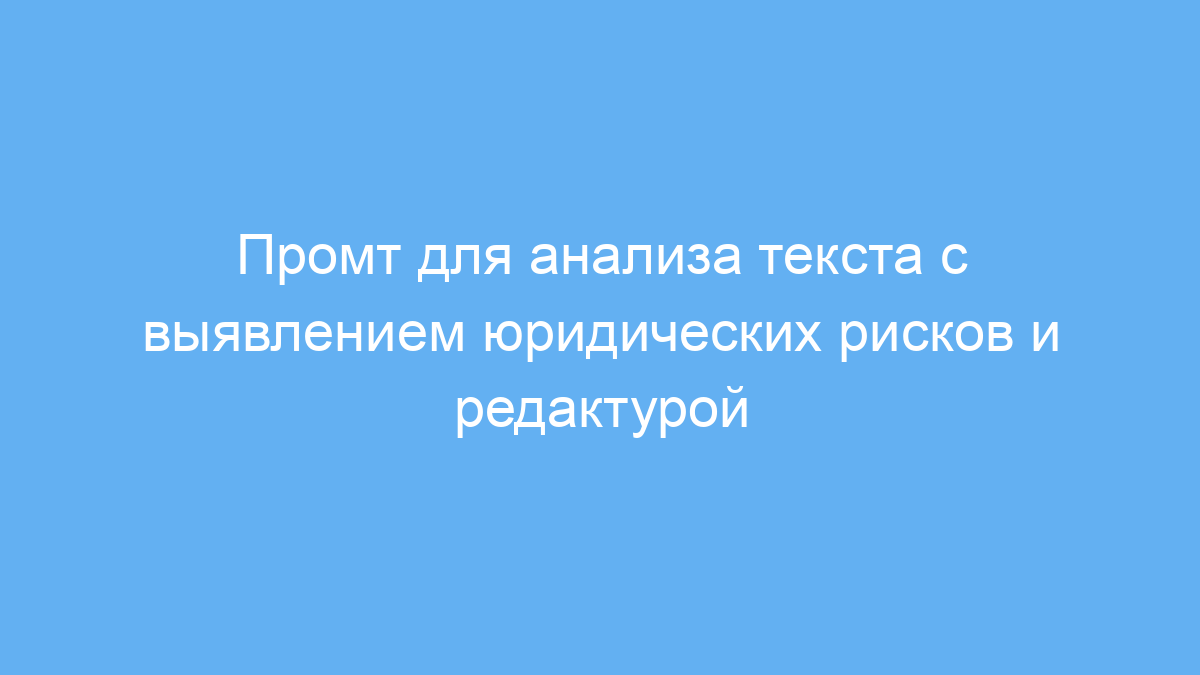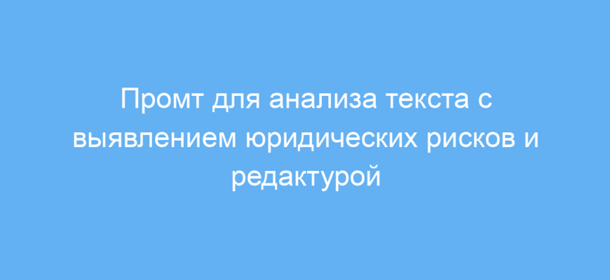 Данный промт предназначен для специалистов, которые работают с текстами и хотят минимизировать юридические риски. Это могут быть юристы, копирайтеры, маркетологи и владельцы бизнеса, которые публикуют информационные материалы или рекламные сообщения.