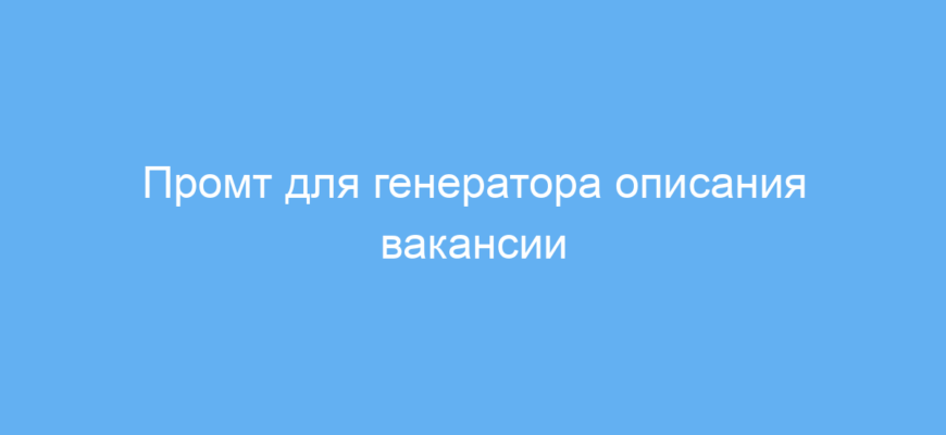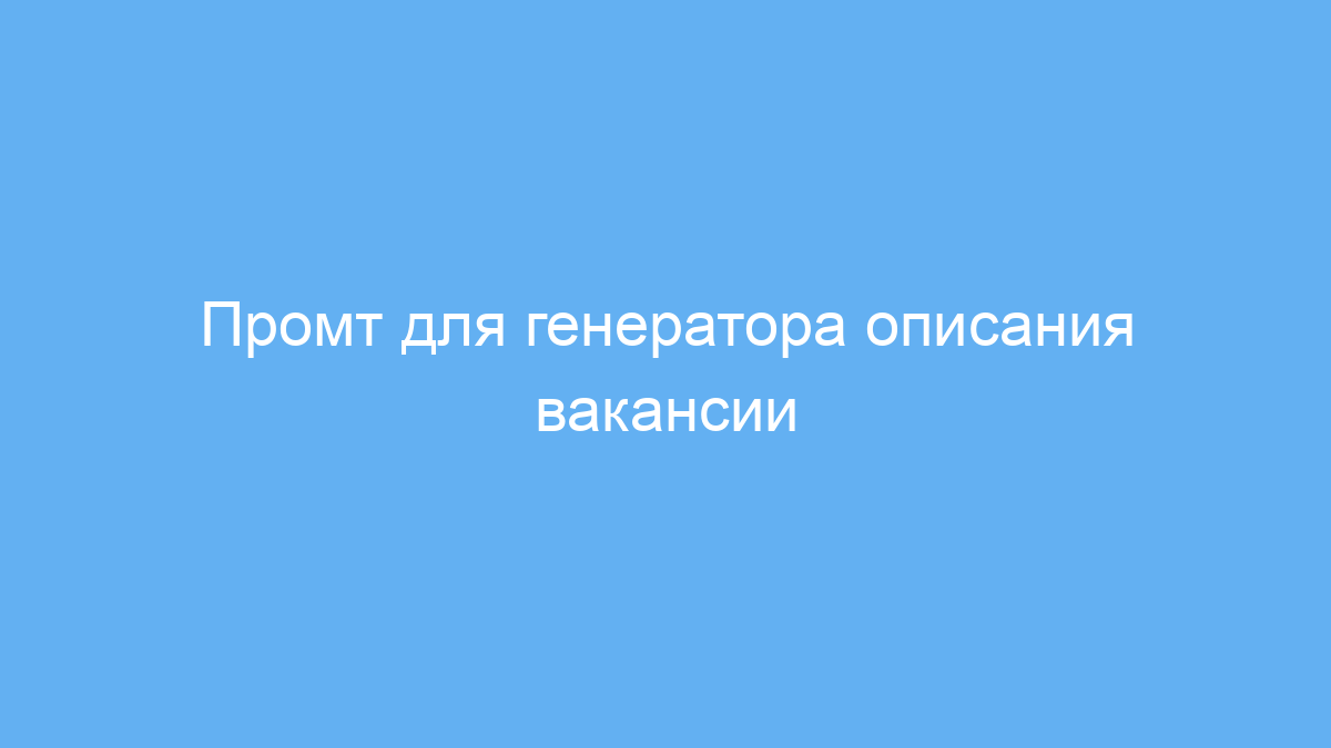Промт решает проблему нехватки времени и опыта в написании вакансий. Он упрощает сбор данных и автоматически выстраивает их в логичную и информативную форму. Для работы с ним достаточно заполнить шаблон конкретными данными — и получить готовый текст для публикации.