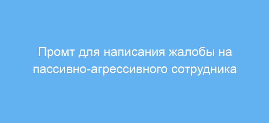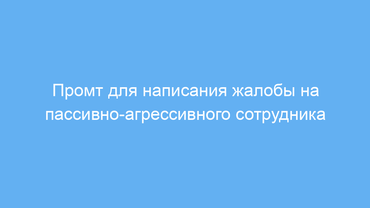 Этот промт предназначен для тех, кому нужно составить жалобу на сотрудника, проявившего пассивно-агрессивное и невежливое поведение. Он помогает оформить недовольство в деловом стиле, чётко описать проблему и выразить своё отношение к случившемуся. Использовать такой текст удобно тем, кто хочет добиться реакции от организации, не испытывая затруднений с формулировками и структурой обращения.