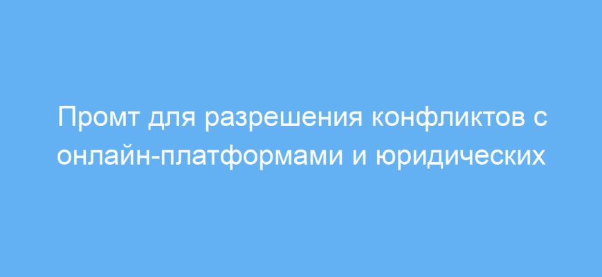 Этот промт помогает быстро получать юридические советы и готовые тексты писем для разрешения споров с онлайн-платформами. Он экономит время, снижает стресс и повышает шансы на успешное решение конфликтов без необходимости долгих разбирательств.