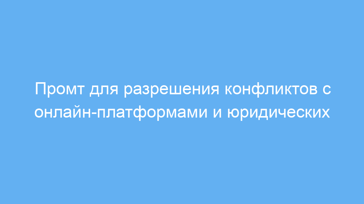 Этот промт предназначен для людей, которые сталкиваются с трудностями в общении или спорах с онлайн-платформами и сервисами. Он поможет юристам, представителям служб поддержки, а также простым пользователям, которым нужны грамотные юридические рекомендации и помощь в составлении писем для урегулирования конфликтов.
