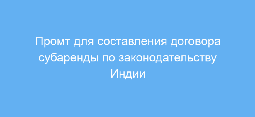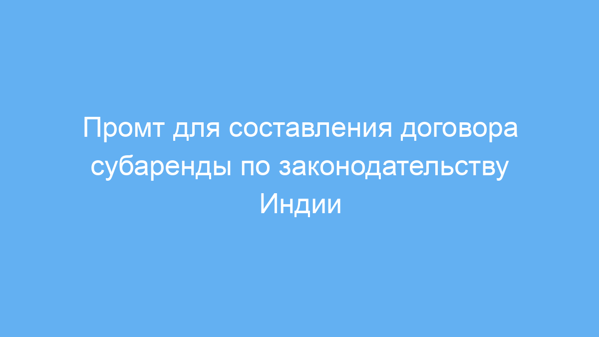 Этот промт значительно упрощает процесс подготовки договора субаренды по индийскому законодательству. Он помогает быстро получить структурированный и понятный шаблон, который можно адаптировать под нужды конкретной сделки. Благодаря этому вы экономите время и снижаете риск ошибок при составлении юридически значимого документа.