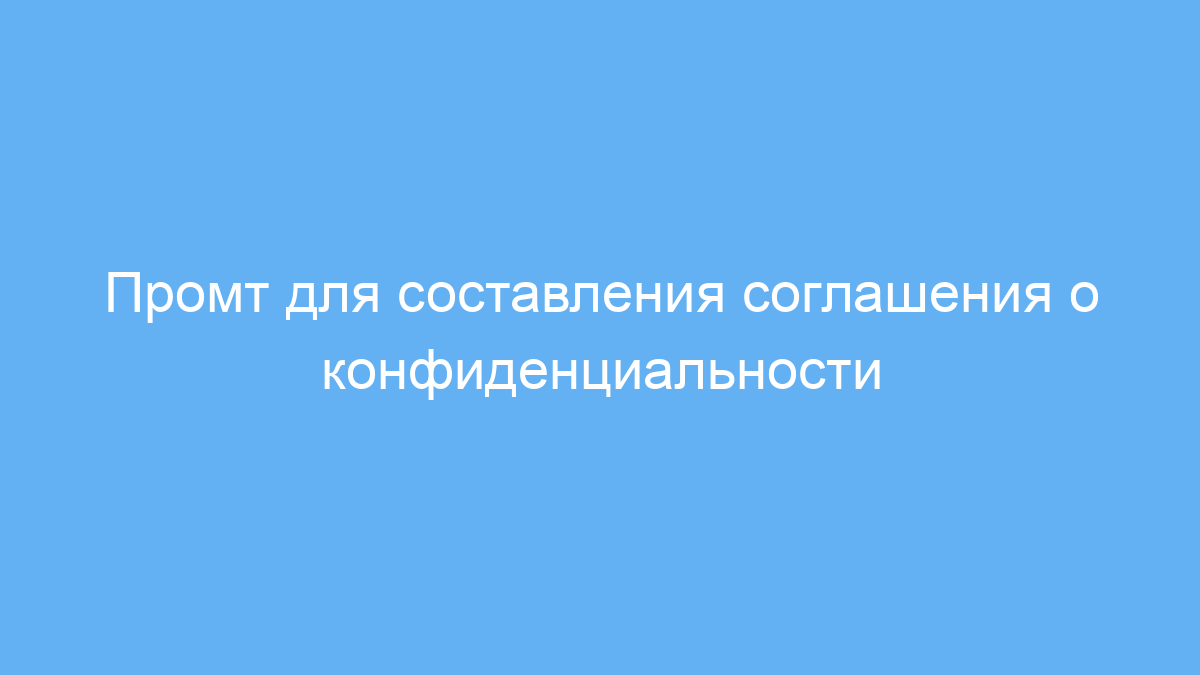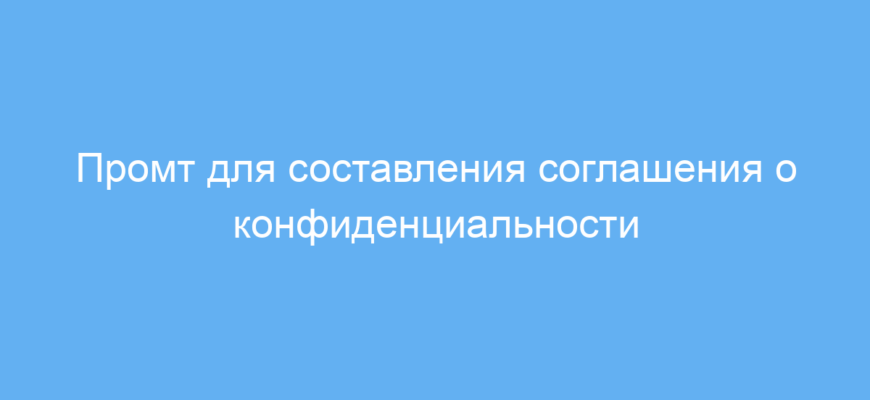 Этот промт предназначен для юристов, предпринимателей, менеджеров проектов и всех, кто хочет быстро подготовить корректное соглашение о конфиденциальности. Он помогает создать документ, защищающий важную информацию и регулирующий её использование между сторонами.