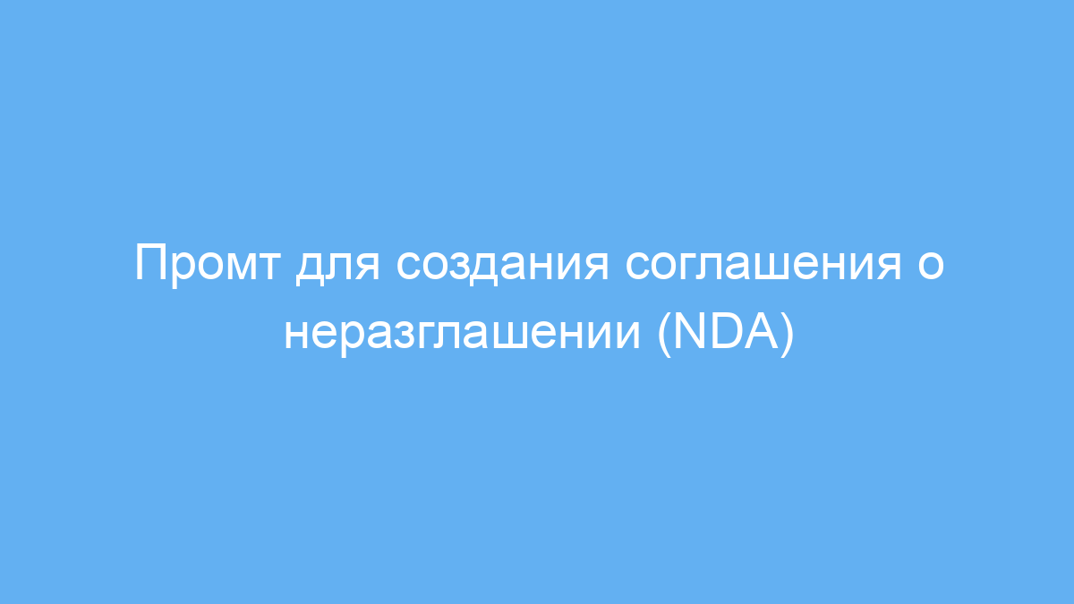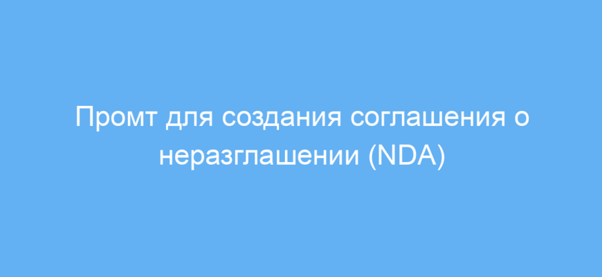 Этот промт предназначен для юристов, предпринимателей, менеджеров по безопасности и всех, кто работает с конфиденциальной информацией. Он помогает быстро и корректно составить договор о неразглашении (NDA), который защищает важные данные от несанкционированного раскрытия.