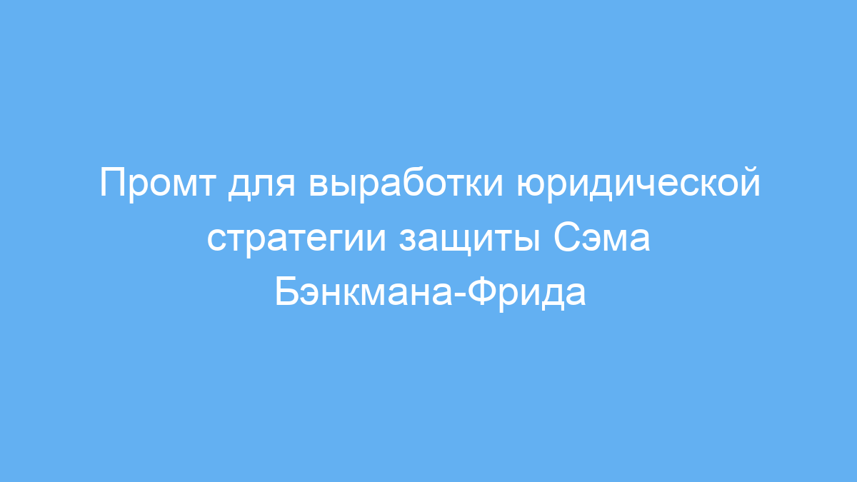 Данный промт предназначен для юристов, студентов юридических факультетов, аналитиков и всех, кто интересуется разработкой юридических стратегий. Он помогает быстро сформировать теоретическую стратегию защиты для конкретного дела — в данном случае для Сэма Бэнкмана-Фрида, основателя компании FTX. Такой подход упрощает понимание сложных юридических ситуаций и структурирует варианты защиты.