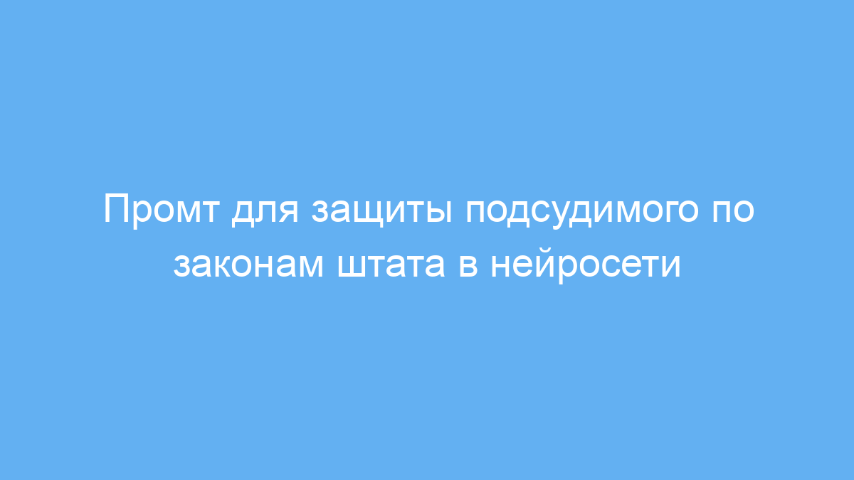 Этот промт экономит время и помогает быстро создавать юридически обоснованные ответы, учитывающие региональные законы. Он облегчает работу юристов и студентов, предоставляя шаблон для диалога с нейросетью, имитирующей защиту подсудимого.