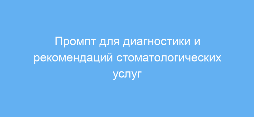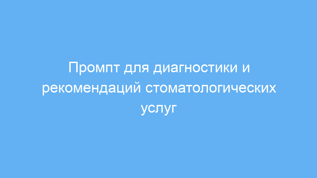 Промпт решает проблему нехватки времени на консультации и позволяет быстро получить рекомендации по уходу и лечению в зависимости от представленных данных. Он помогает стоматологам оптимизировать работу, а также может использоваться для создания обучающих чат-ботов и сервисов поддержки пациентов.