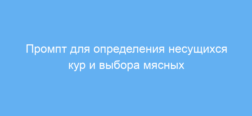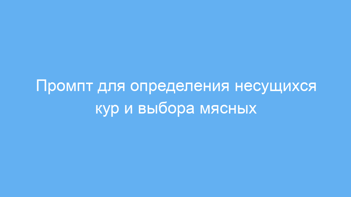 Этот промпт создан для птицеводов, владельцев небольших хозяйств и фермеров, которые хотят точно понять, какие из их кур несут яйца, а какие — нет. Он помогает оценить продуктивность кур и принять решение, каких птиц можно использовать на мясо.