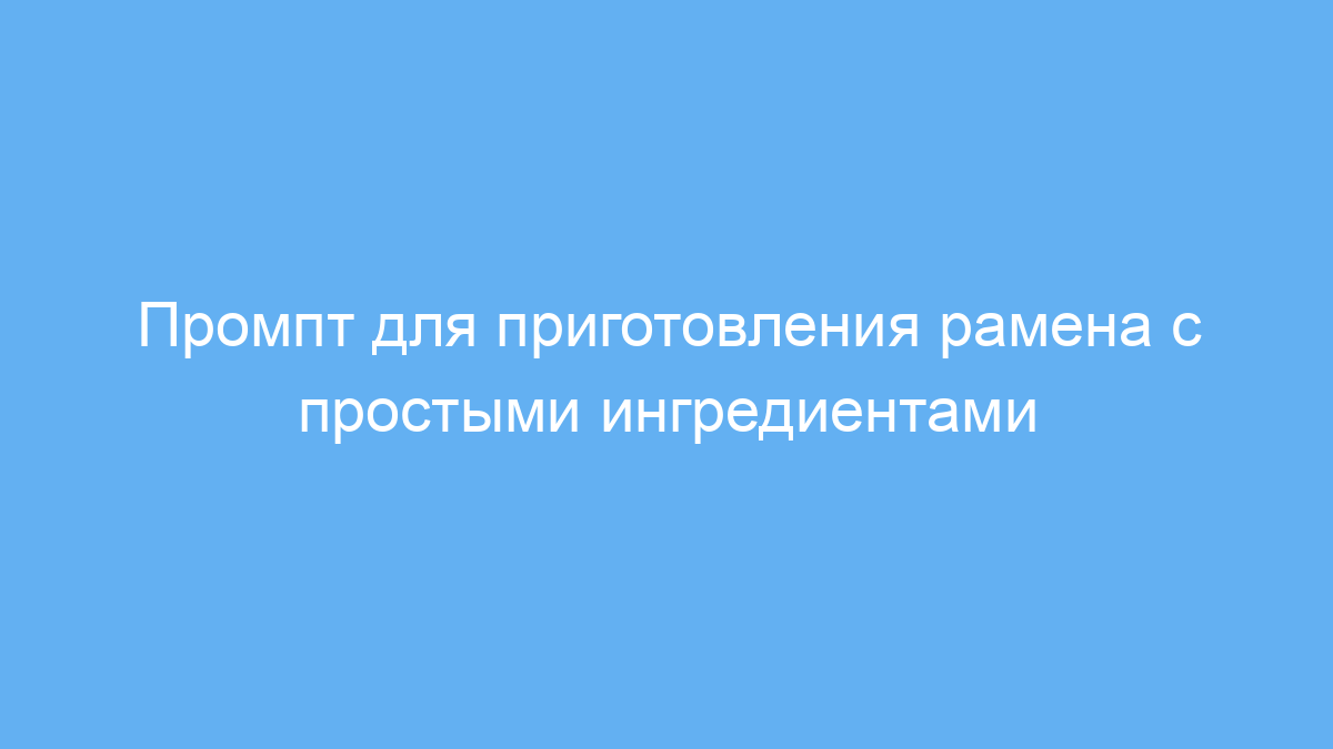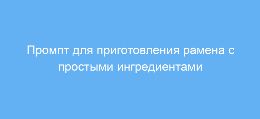 Этот промпт создан для тех, кто хочет быстро и просто приготовить рамен — популярное японское блюдо с лапшой и бульоном. Он подойдёт как начинающим кулинарам, так и тем, кто хочет адаптировать рецепт под доступные ингредиенты, учитывая вкус и ограничения (например, аллергии или диеты).