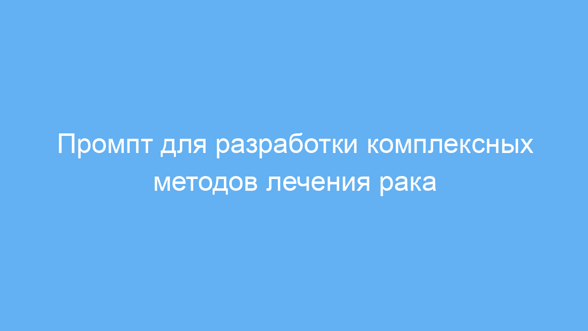 Промпт решает задачи координации работы разных специалистов, помогает выстроить структуру исследований, учитывающую персонализированный подход к пациентам и использование искусственного интеллекта. Он дает четкий план действий для достижения прорывных результатов в терапии онкологических заболеваний.