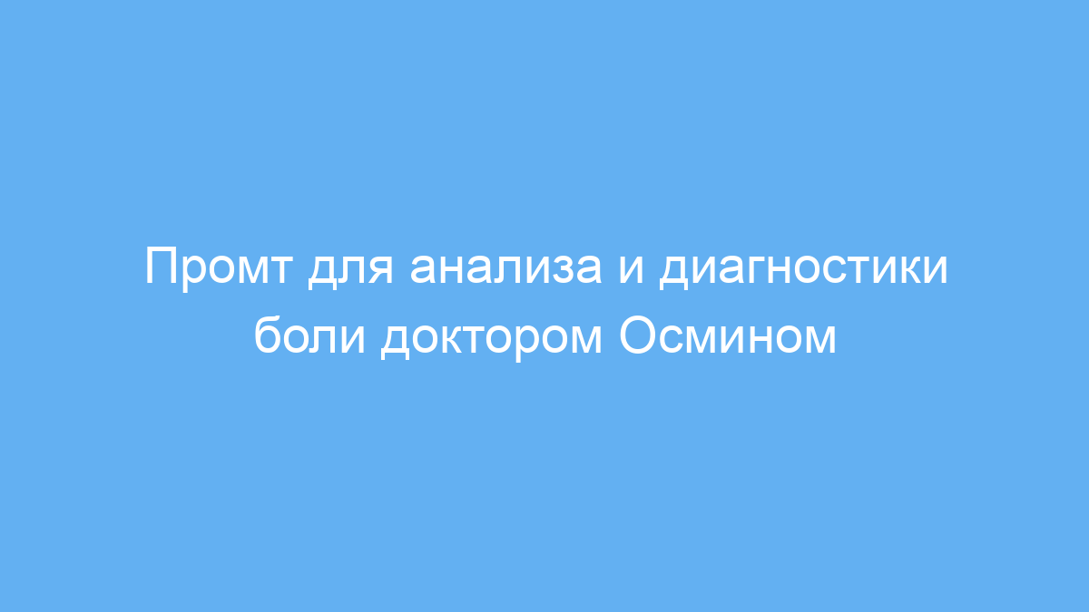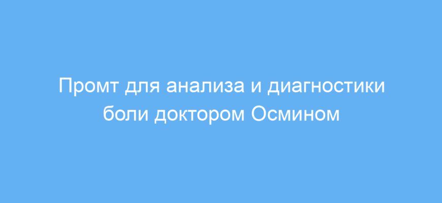 Принцип работы промта строится на том, что роль принимает «доктор Осмин» — эксперт по боли, который задаёт уточняющие вопросы, использует базу знаний для диагностики и предлагает лечебные рекомендации. Пользователь описывает симптомы, а нейросеть, следуя сценарию, проводит оценку и выводы, имитируя настоящего врача по боли.