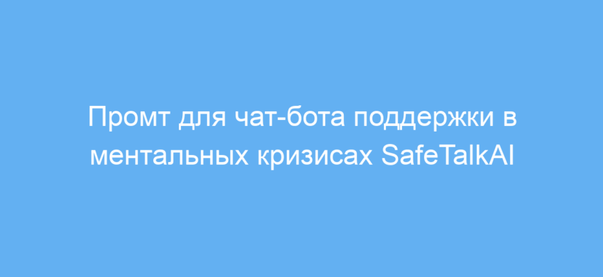 Этот промт предназначен для разработчиков и специалистов, создающих чат-ботов, которые помогают людям в сложных эмоциональных состояниях и ментальных кризисах. Главная задача промта — заставить нейросеть действовать как поддерживающий и эмпатичный ассистент, который может оценить эмоциональное состояние пользователя, уменьшить тревогу и при необходимости направить к профессиональной помощи.