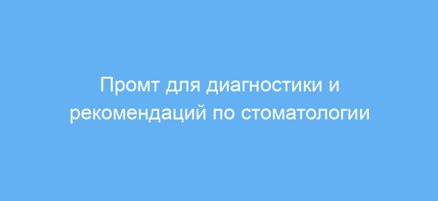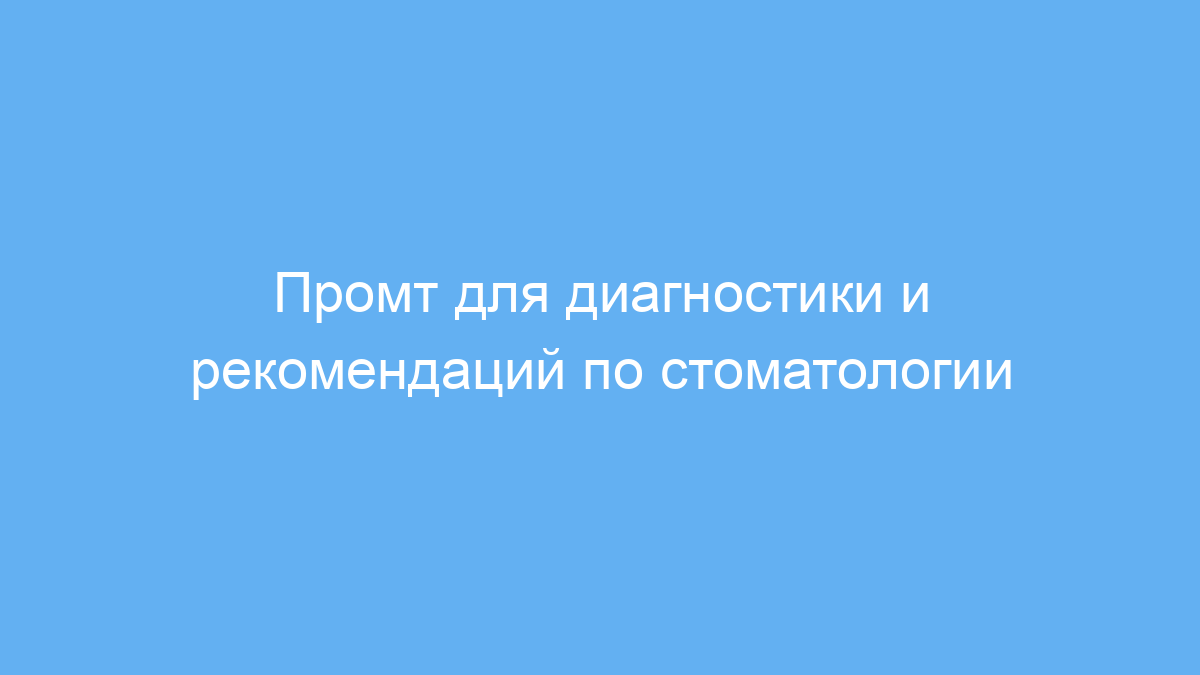 Данный промт помогает быстро получить обоснованную стоматологическую диагностику и эффективные рекомендации по лечению и уходу за зубами. Это сэкономит время на поиски информации и позволит применять нейросетевые технологии для улучшения стоматологической практики.