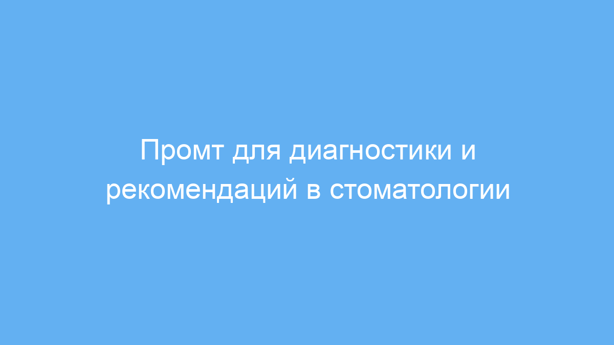 Использование такого промта позволяет быстро получить профессионально оформленные рекомендации по диагностике и уходу, экономя время на подготовку и изучение сложных материалов. Это помогает лучше понять состояние пациентов и повышает качество работы стоматолога или учащегося.