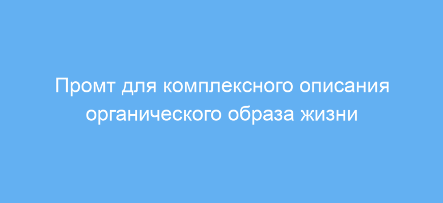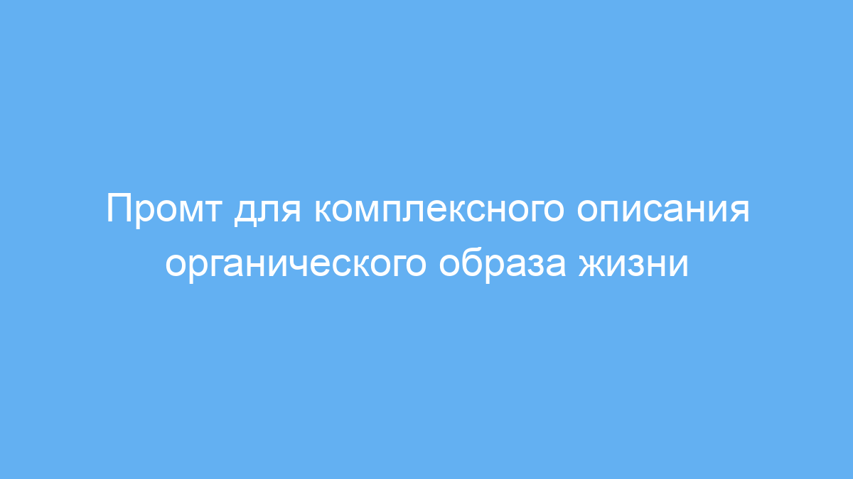 Этот промт предназначен для авторов контента, блогеров, маркетологов и специалистов, которые создают статьи, обзоры или образовательные материалы по теме органического образа жизни. Включение ключевых аспектов органического питания, экологии и использования продукции без синтетики помогает комплексно раскрыть тему для широкой аудитории.