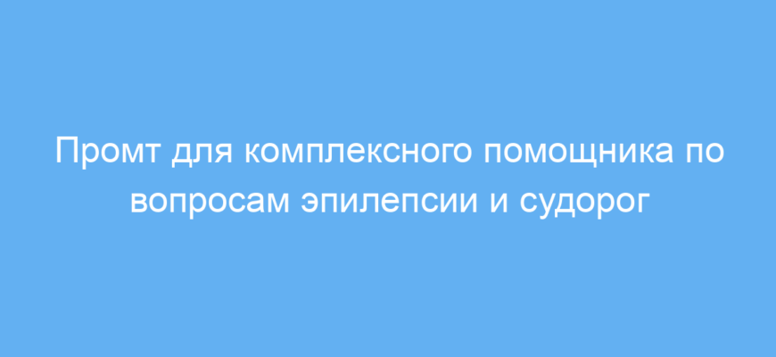 Этот промт создан для специалистов и помощников, которые хотят получить от нейросети объемную, подробную и разностороннюю поддержку по вопросам эпилепсии и судорог. Он подходит для врачей-неврологов, эпилептологов, медицинских работников, педагогов, а также для разработчиков чат-ботов и информационных сервисов, которые обслуживают пациентов или их родственников.