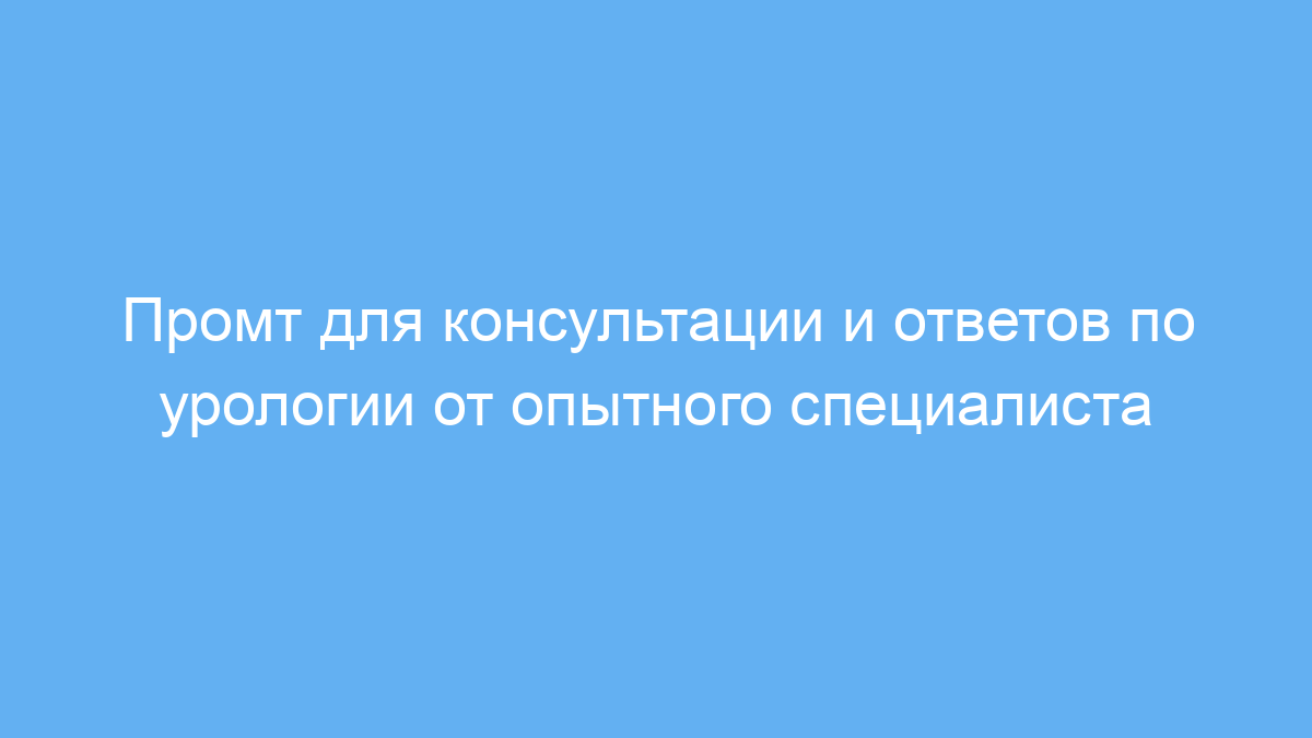 Использование такого промта экономит время и помогает быстро получить компетентные ответы по урологии без необходимости искать информацию на разных ресурсах. Он упрощает доступ к специализированным знаниям и помогает лучше понимать медицинские темы.