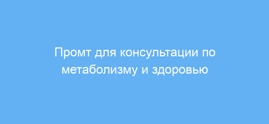 Использование данного промта позволяет структурировано начать диалог с нейросетью, получить индивидуальные советы по питанию и тренировкам с учётом метаболической физиологии. Это экономит время и повышает качество консультаций, помогая избежать общих и нецелевых рекомендаций.