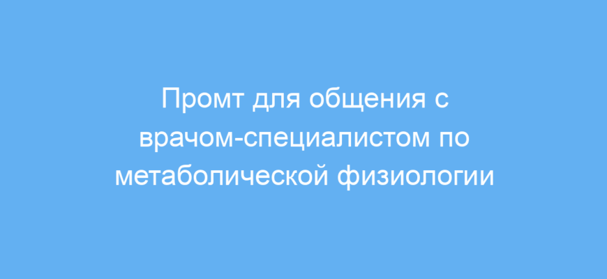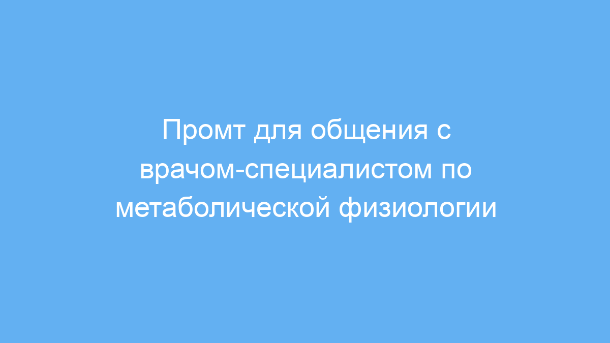 Этот промт рассчитан на пользователей нейросетей, которым нужно смоделировать диалог с опытным врачом-исследователем в области метаболической физиологии. Он поможет получить профессиональные рекомендации или обсудить медицинские темы, связанные с пищевыми и физическими вмешательствами.