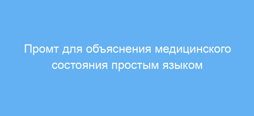 Этот промт значительно упрощает создание понятных и структурированных текстов о медицинских состояниях. Он экономит время и помогает сделать информацию доступной для пациентов, что улучшает их информированность и поддерживает процесс лечения.