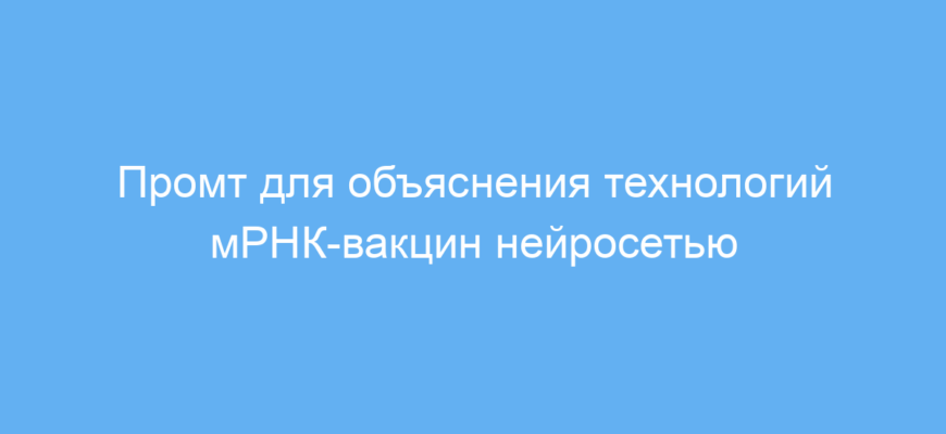 Промт помогает решить задачу быстрого получения аккуратного и экспертного текста, который раскрывает, что такое мРНК-вакцины, как они функционируют и почему они важны для медицины. Также он позволяет получить интерактивность — в конце нейросеть задаёт вопрос, что стимулирует дальнейшее понимание и обсуждение темы.