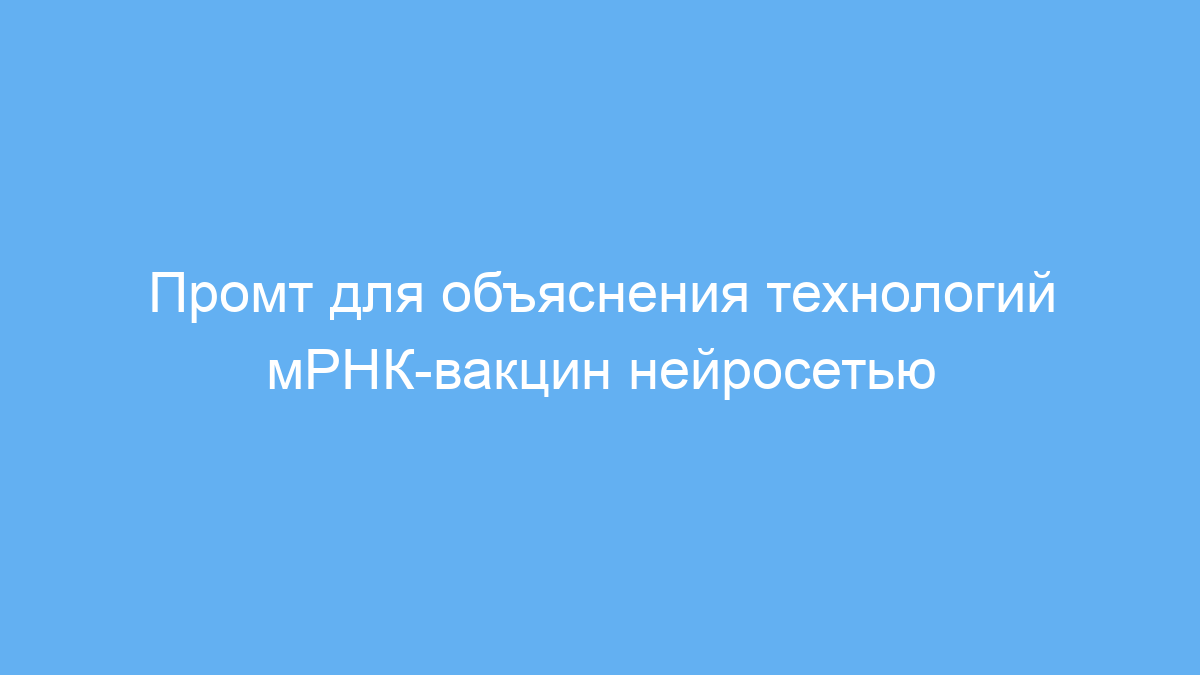 Данный промт помогает быстро и качественно получить сжатое, компетентное и доступное объяснение технологии мРНК-вакцин. Это экономит время при подготовке обучающих материалов, статей или справок, а также способствует лучшему усвоению темы через интерактивный вопрос в конце.