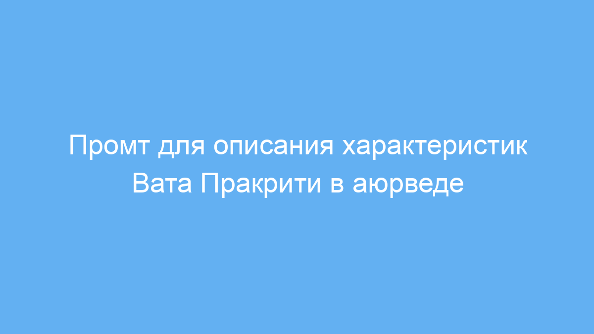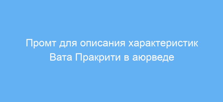 Промт работает так: нейросеть получает запрос и на его основе формирует текст, в котором подробно и понятно раскрываются все основные особенности, связанные с Вата Пракрити. Это экономит время и усилия, особенно при создании образовательного контента или подготовке материалов для сайта.