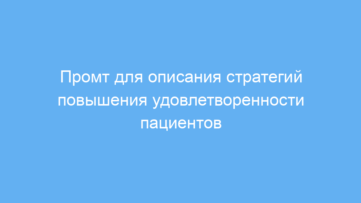 Данный промт создан для специалистов, работающих с пациентами и медицинскими командами, а также для разработчиков нейросетей, помогающих улучшить коммуникацию в медицинской практике. Его основная задача — сгенерировать краткие и структурированные рекомендации по повышению уровня удовлетворенности пациентов и вовлеченности пациентов в процесс лечения. Промт помогает быстро получить эффективные стратегии и инициативы для улучшения обслуживания с учётом конкретного медицинского состояния пациента.