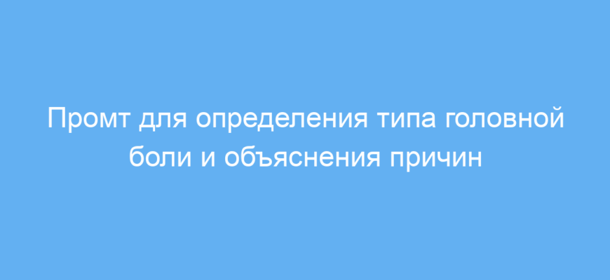 Использование данного промта позволяет быстро получить структурированную и понятную информацию о типах головных болей на основе симптомов пользователя. Это экономит время на поиск медицинской информации и помогает лучше ориентироваться в теме.