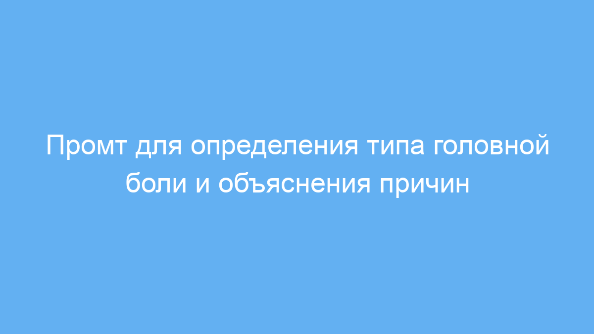 Этот промт предназначен для тех, кто хочет получить подробную информацию о разных видах головных болей. Он полезен для студентов медицины, специалистов, изучающих неврологию, а также для обычных пользователей, желающих понять природу своих симптомов.