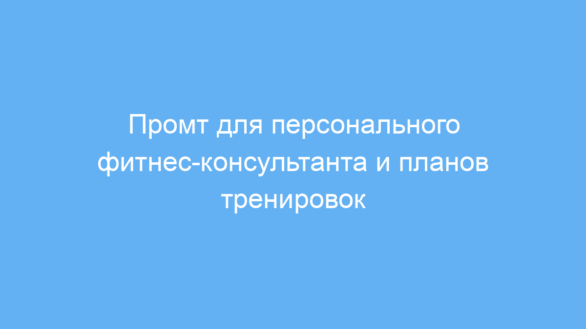 Этот промт создан для тех, кто хочет получить индивидуальные рекомендации по фитнесу, будь то начинающие или опытные спортсмены, а также для фитнес-тренеров, работающих с клиентами онлайн. Использование этого промта помогает быстро сформировать персональный план тренировок, советы по питанию и здоровому образу жизни, оптимально подобранные под параметры и цели пользователя.