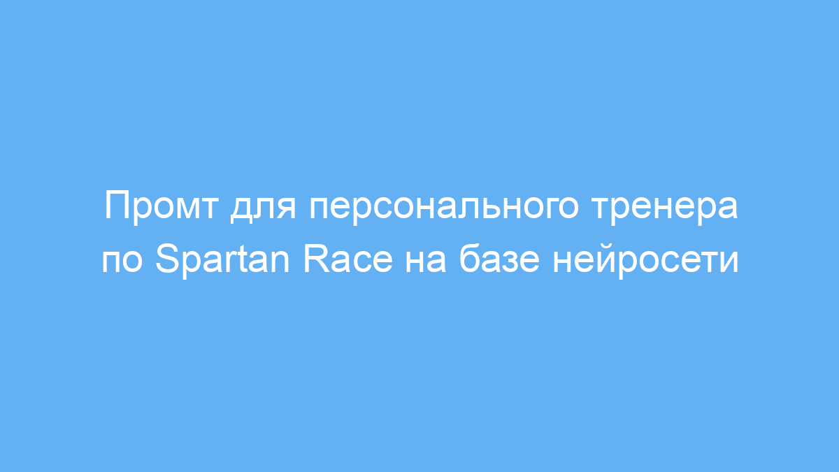 Этот промт создан для тех, кто хочет подготовиться к гонке Spartan Race с помощью виртуального тренера. Он пригодится спортсменам и любителям, которые планируют участвовать в разных форматах гонок Spartan — от Sprint до Ultra. Используя промт, можно получить персональные рекомендации по тренировкам, питанию и безопасности.