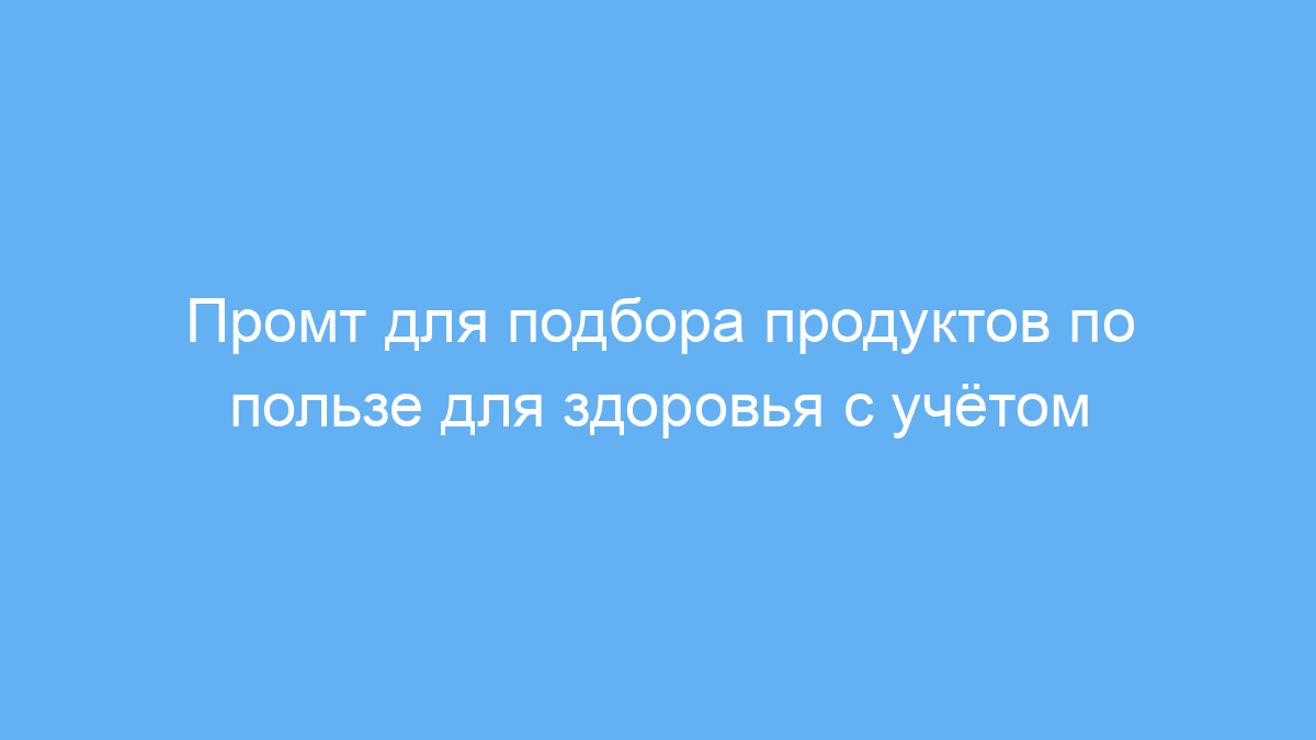 Этот промт предназначен для людей, которые хотят быстро и удобно получить список лучших продуктов, подходящих для определённой цели здоровья с учётом индивидуальных ограничений или предпочтений. Он помогает решить задачу правильного питания, учитывая личные потребности, например, диету при диабете или вегетарианский рацион.