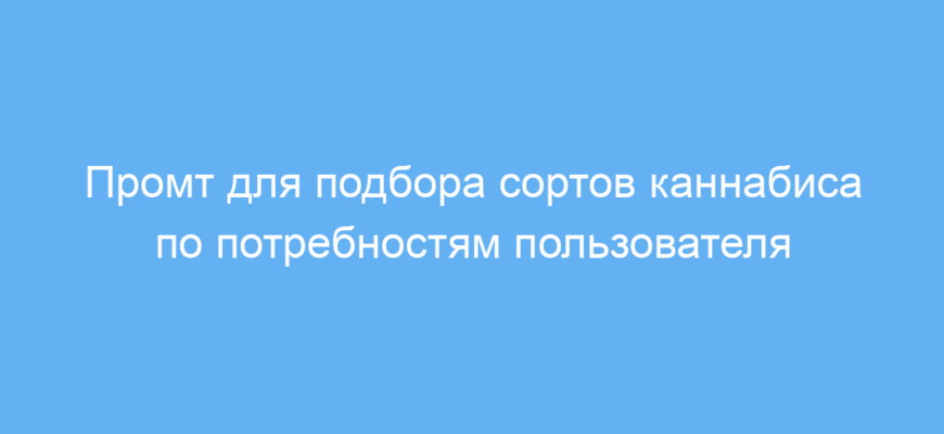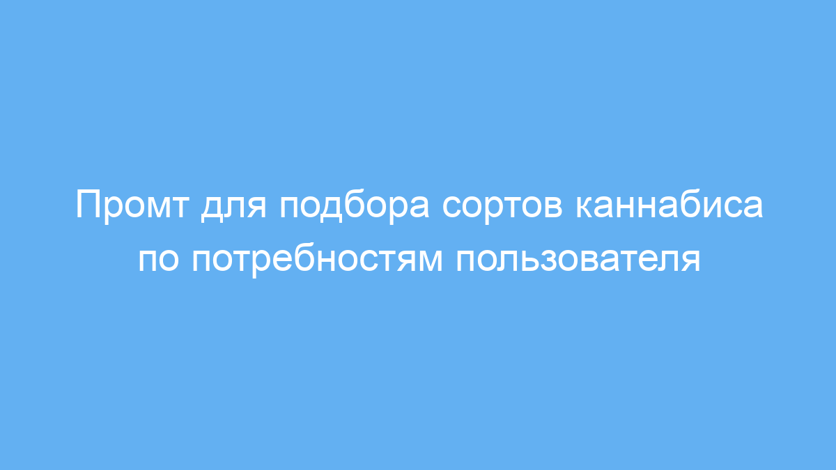 Этот промт позволяет быстро и удобно создавать интерактивных помощников для подбора сортов каннабиса с учётом индивидуальных потребностей и ограничений пользователя. Он упрощает сбор информации, даёт грамотные рекомендации на основании проверенных данных и помогает сделать процесс выбора более осознанным и безопасным.