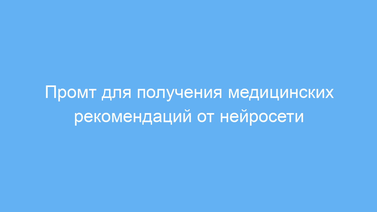 Данный промт помогает быстро получить направляющие медицинские советы от нейросети без лишних формальностей. Он экономит время и помогает лучше понять ситуацию до обращения к врачу.