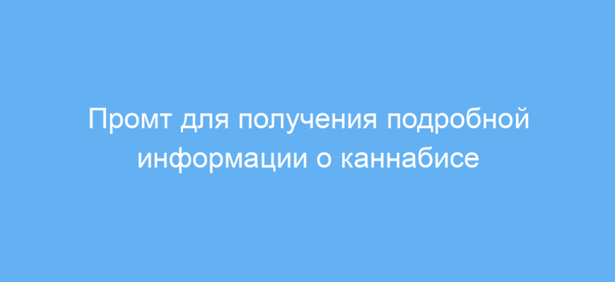 Этот промт предназначен для создания чат-бота, который предоставляет подробные и полезные сведения о каннабисе. Его смогут использовать разработчики нейросетей, владельцы сайтов, специалисты в области медицины и права, а также все, кто хочет быстро получать структурированную информацию по разным аспектам каннабиса.