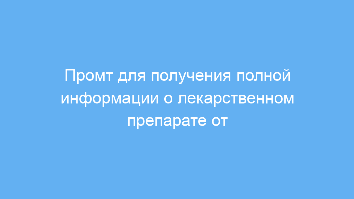 Данный промт существенно экономит время и усилия при поиске развернутой и точной информации о лекарственных препаратах. Он помогает получить детальные данные в одной структуре, что важно для консультаций, обучения и фармацевтической деятельности. С таким инструментом можно быстро ориентироваться в препаратах и давать пациентам и коллегам правильные рекомендации.