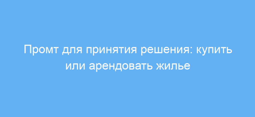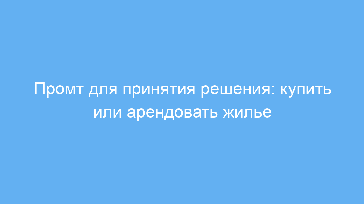 Этот промт значительно упрощает процесс принятия непростого решения — покупать или арендовать жилье. Он помогает учесть главные параметры, структурировать информацию и получить персональный совет. Вы экономите время и снижаете стресс от неопределенности, становясь увереннее в своем выборе.